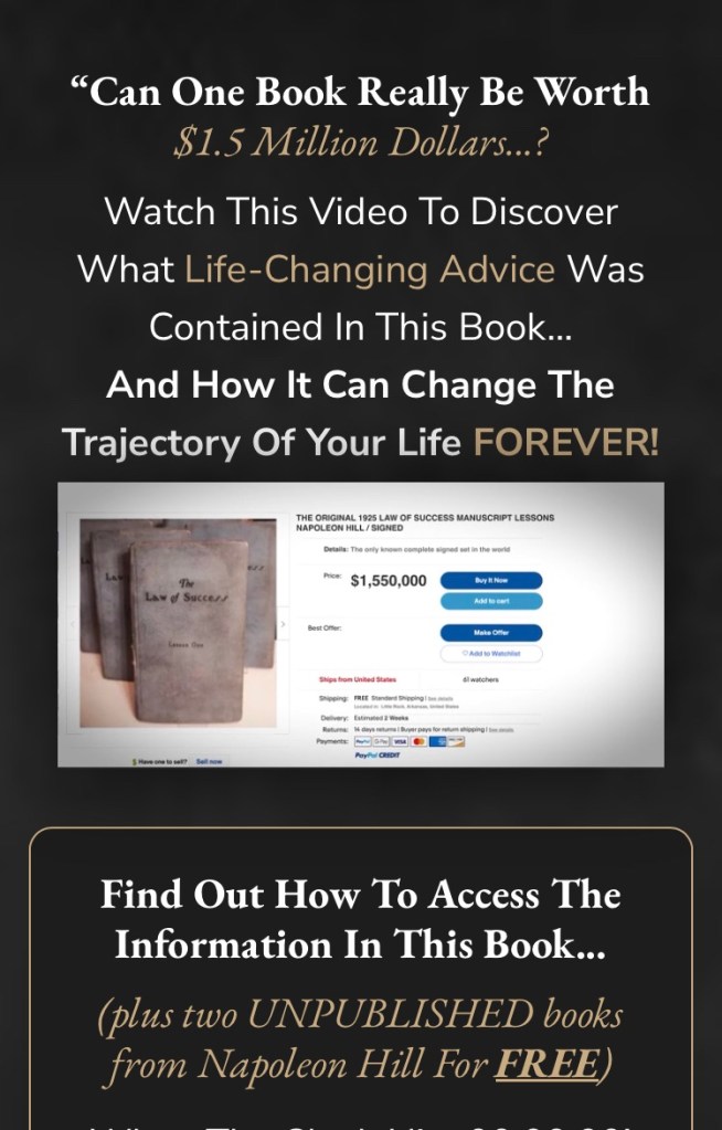 One day Russell typed ‘Napoleon Hill’ into a search engine and discovered that the book LAWS OF SUCCESS was for sale … for $1.5 million. A breathtaking amount of money for one book.
